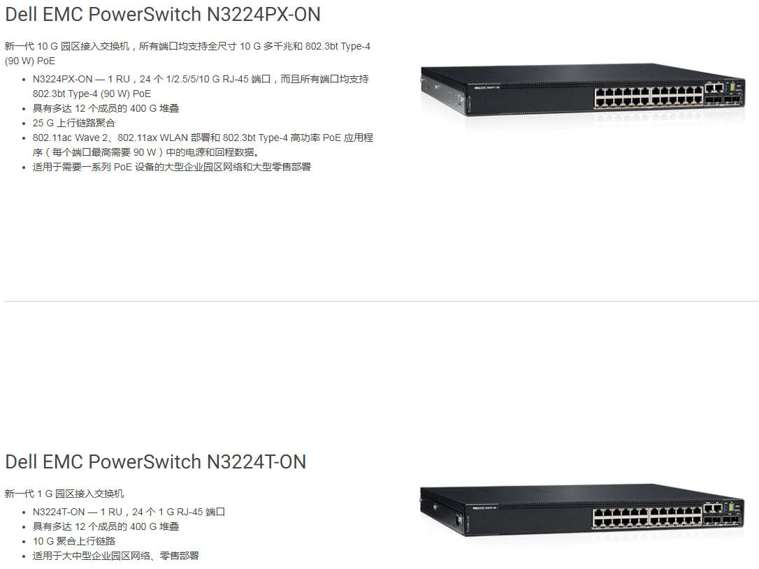 • Dell EMC Networking PowerSwitch N3200 系列